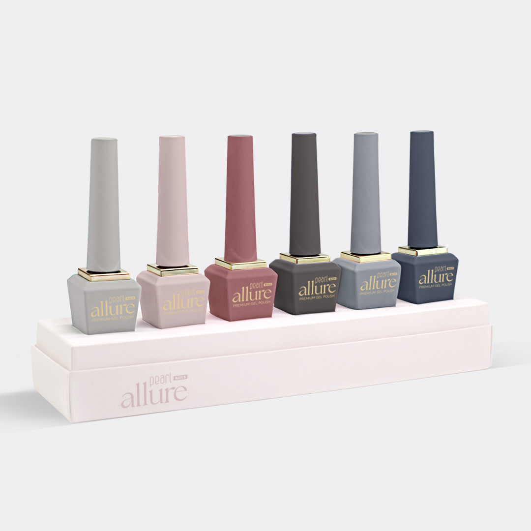 Színazonos és elegáns üvegei, displayként használható doboza eleganciát és prémium benyomást kölcsönöz műkörmös asztalodnak és szalonodnak.