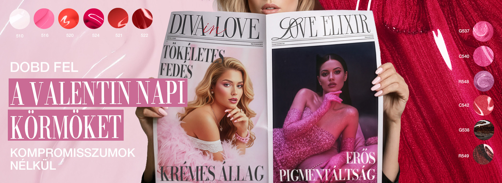 Merülj el a csábítás világában a Love Elixir kollekció csillámos árnyalataival! Ezek a Valentin-napi hangulatot idéző színek nemcsak vendégeidet, hanem téged is elvarázsolnak – ragyogásuk pedig első pillanattól szerelembe ejt.