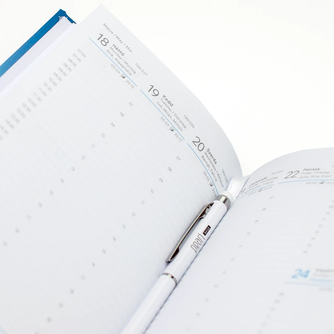 A Pearl Nails idén sem engedi, hogy egy igazán csajos határidőnapló nélkül vágj bele az új évbe. Válaszd az exkluzív Allure termékcsaládunk ihlette naplónkat társként, amit kis mérete miatt, egy kisebb női táskában is könnyedén magaddal vihetsz. Ne tévesszen meg a mérete, hiszen jól megtervezett lapelrendezése által egyszerűen és pontosan vezetheted vendégeid időpontjait. Mindezek mellett tartalmaz egy telefonregisztert, ahova feljegyezhetsz elérhetőségeket, de akár kreatív körömdesign ötleteidet is lejegyezheted!