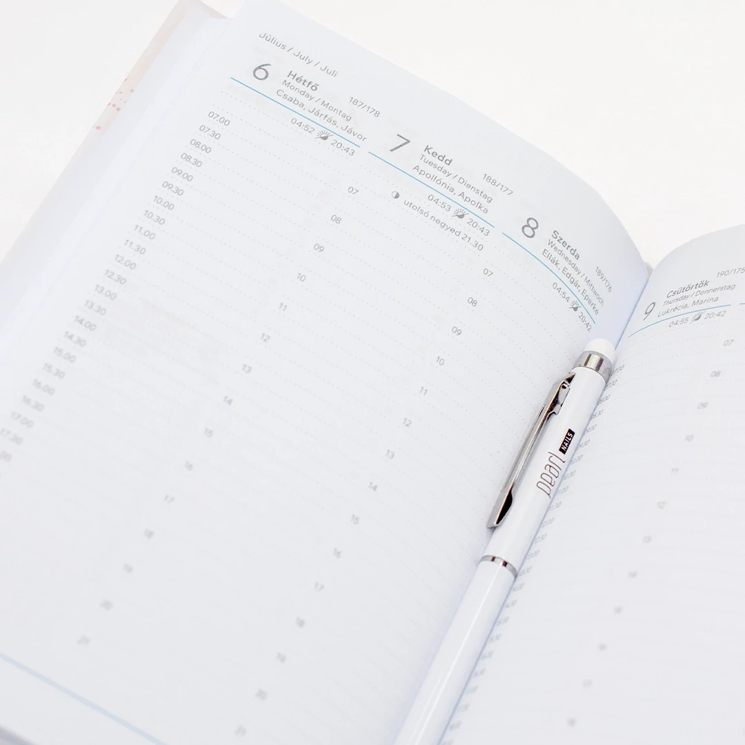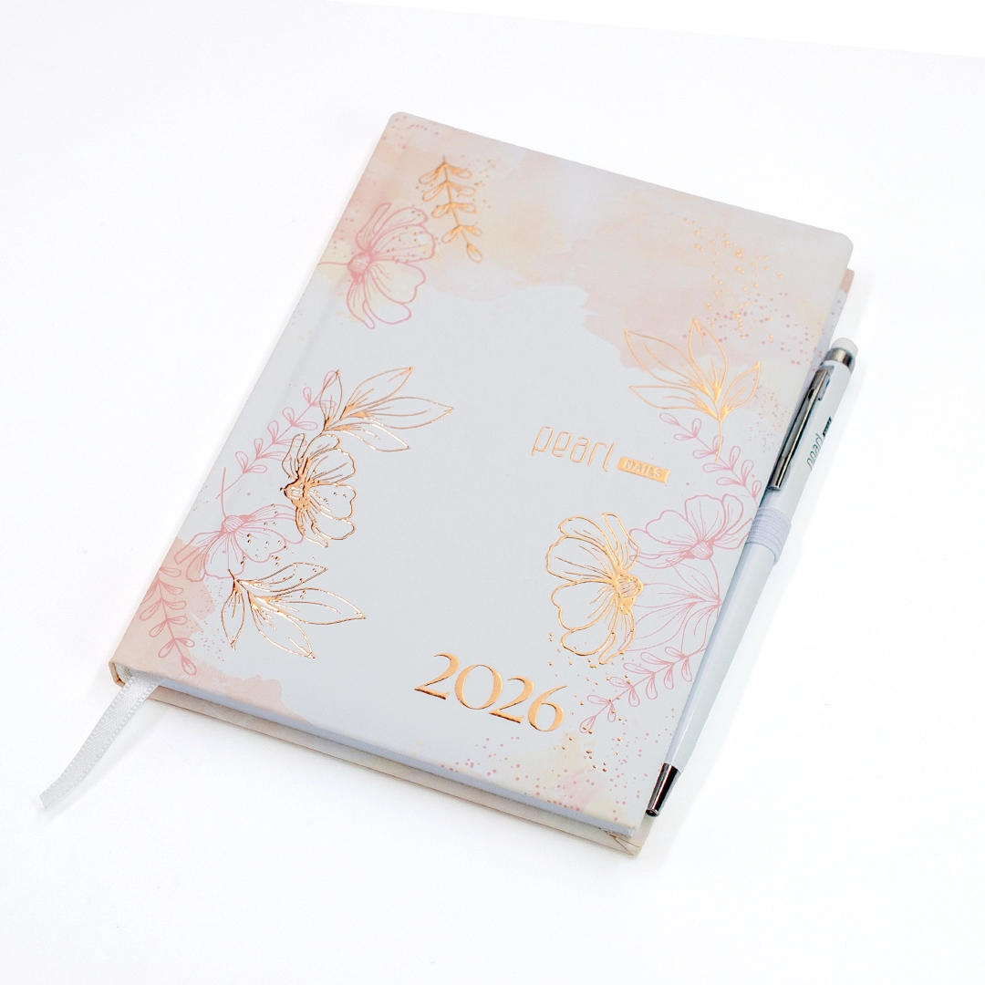 A Pearl Nails idén sem engedi, hogy egy igazán csajos határidőnapló nélkül vágj bele az új évbe. Válaszd az exkluzív Allure termékcsaládunk ihlette naplónkat társként, amit kis mérete miatt, egy kisebb női táskában is könnyedén magaddal vihetsz. Ne tévesszen meg a mérete, hiszen jól megtervezett lapelrendezése által egyszerűen és pontosan vezetheted vendégeid időpontjait. Mindezek mellett tartalmaz egy telefonregisztert, ahova feljegyezhetsz elérhetőségeket, de akár kreatív körömdesign ötleteidet is lejegyezheted!