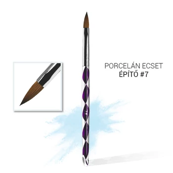 Mesterséges szőrből készült #7-es porcelán építő ecset, kerek, egy pontban végződő fejjel. Jó felszívóképességgel bír. Műanyag, színes nyéllel.