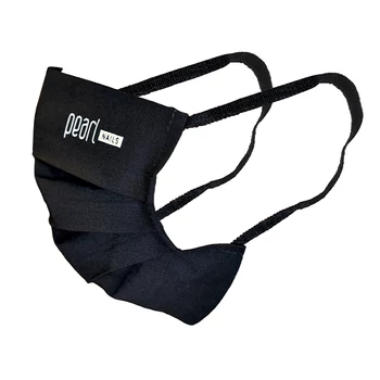 Logózott, fekete színű textil arcmaszk. 100% pamutból készült, hagyományos, kétrétegű arcmaszk gumi pántokkal. Mosható, mosás után újra felhasználható.