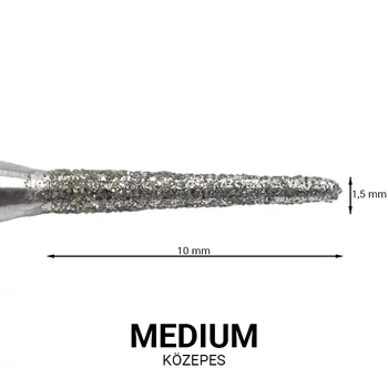 Közepes finomságú, hosszúkás kúp alakú gyémánt csiszolófej gépi manikűrözéshez.