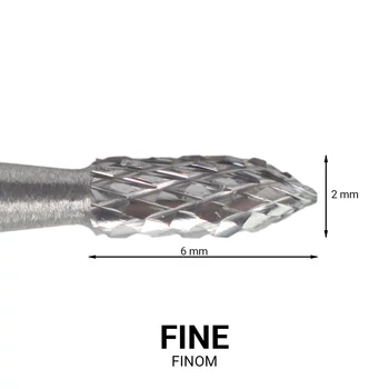 Finom erősségű, hegyes kúp alakú karbid csiszolófej gépi manikűrözéshez.