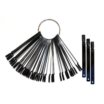 Szétnyitható, pálcás, legyező tip színpaletta. 50 darabos, egyenként karikára húzott tipekkel. Fekete színekben kapható.