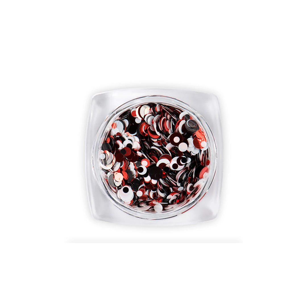 Különböző méretű, vidám és élénk színű körömdíszítő konfettik a gyors, egyszerű és mutatós díszítésekhez.