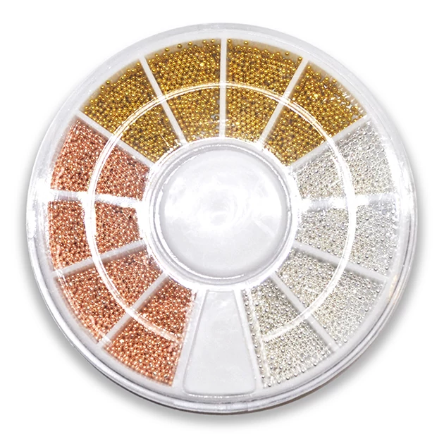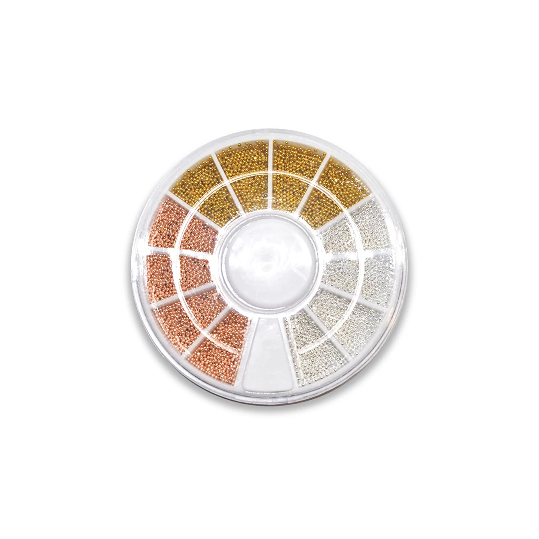 Körömdíszítő szórógyöngyök tárcsás kiszerelésben, 3 színben: arany, ezüst és rosegold.