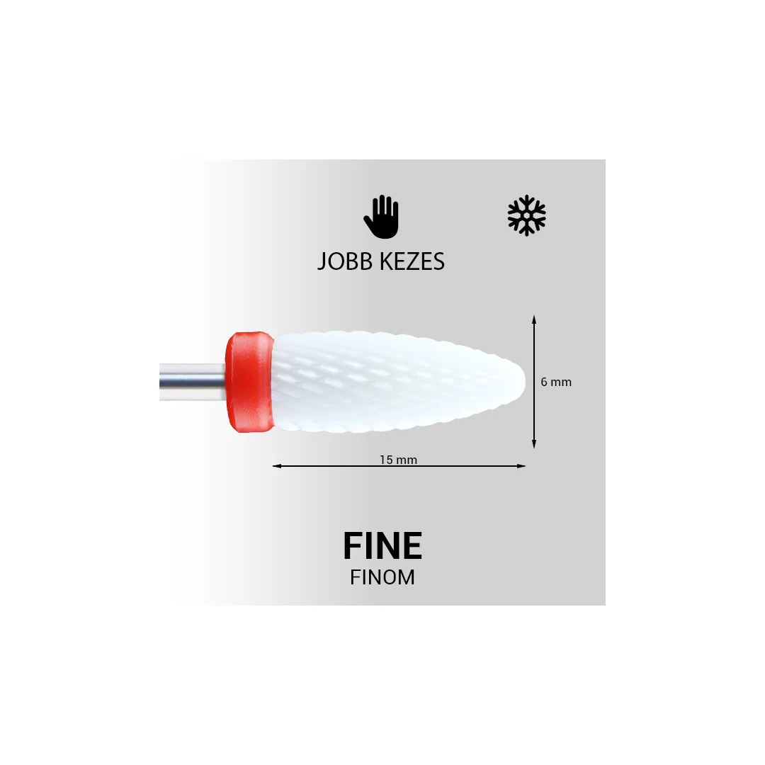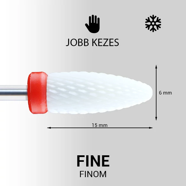 Kúpos formájú, különböző erősségű csiszolófej kerámiából. Kerekített vége biztonságos munkavégzést biztosít porcelán vagy zselé eltávolításakor, formázásakor. A csiszolófej kerámia anyagának köszönhetően munkavégzéskor nem keletkezik hő, nem melegszik. A kerámia fejek használatakor a szaruhártya- és a körömlemez sérülésének elkerülése végett, fokozott figyelemmel dolgozz!