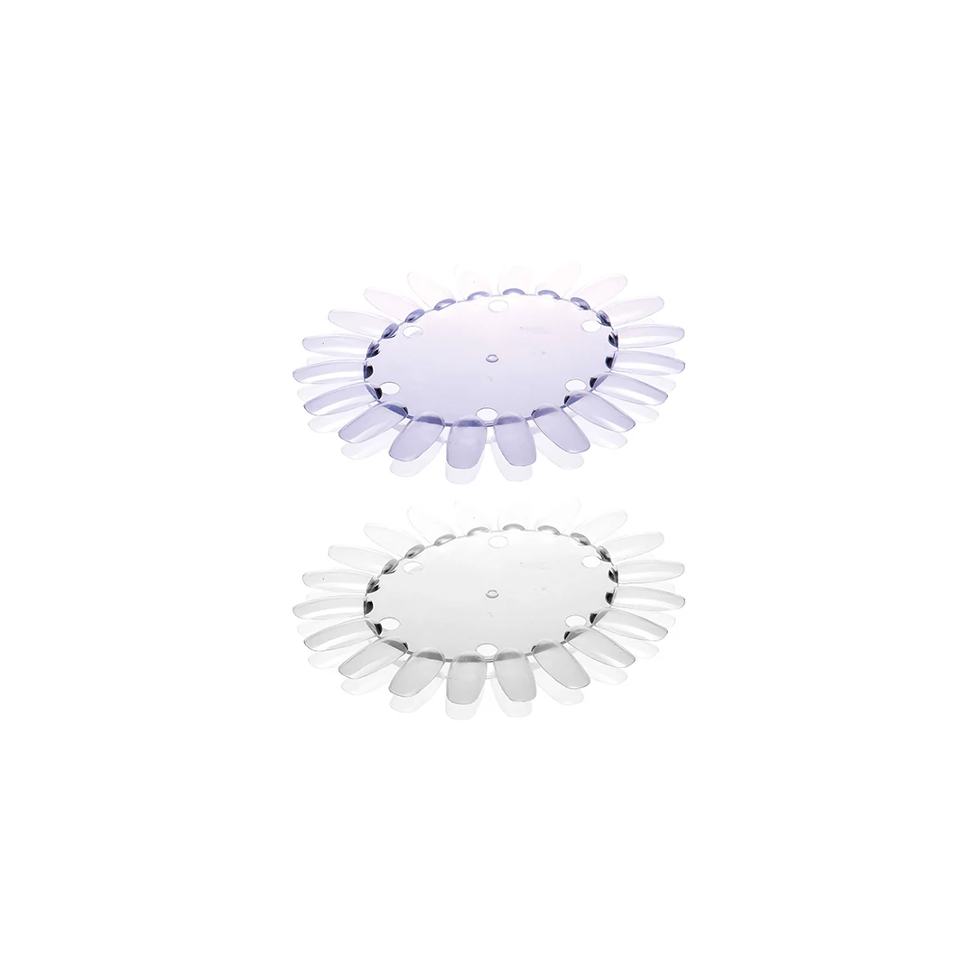 Műanyag, natúr és átlátszó ovális margaréta gél lakk, színes zselé vagy hagyományos körömlakk színeinek és műköröm díszítési technikák bemutatásához.