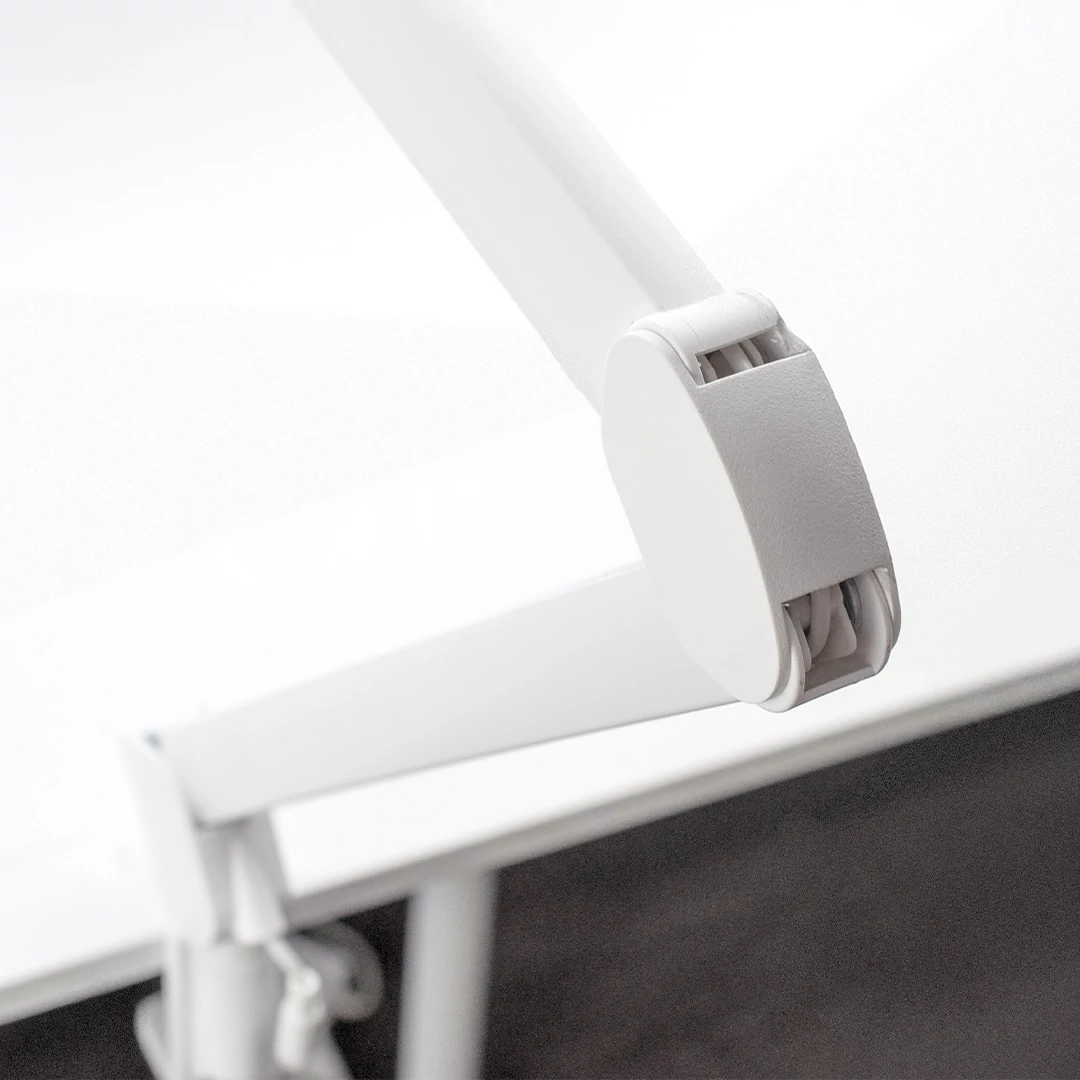 A három csuklós és asztali szorítós kialakítás gyakorlatilag minden asztal esetén használhatóvá teszi.