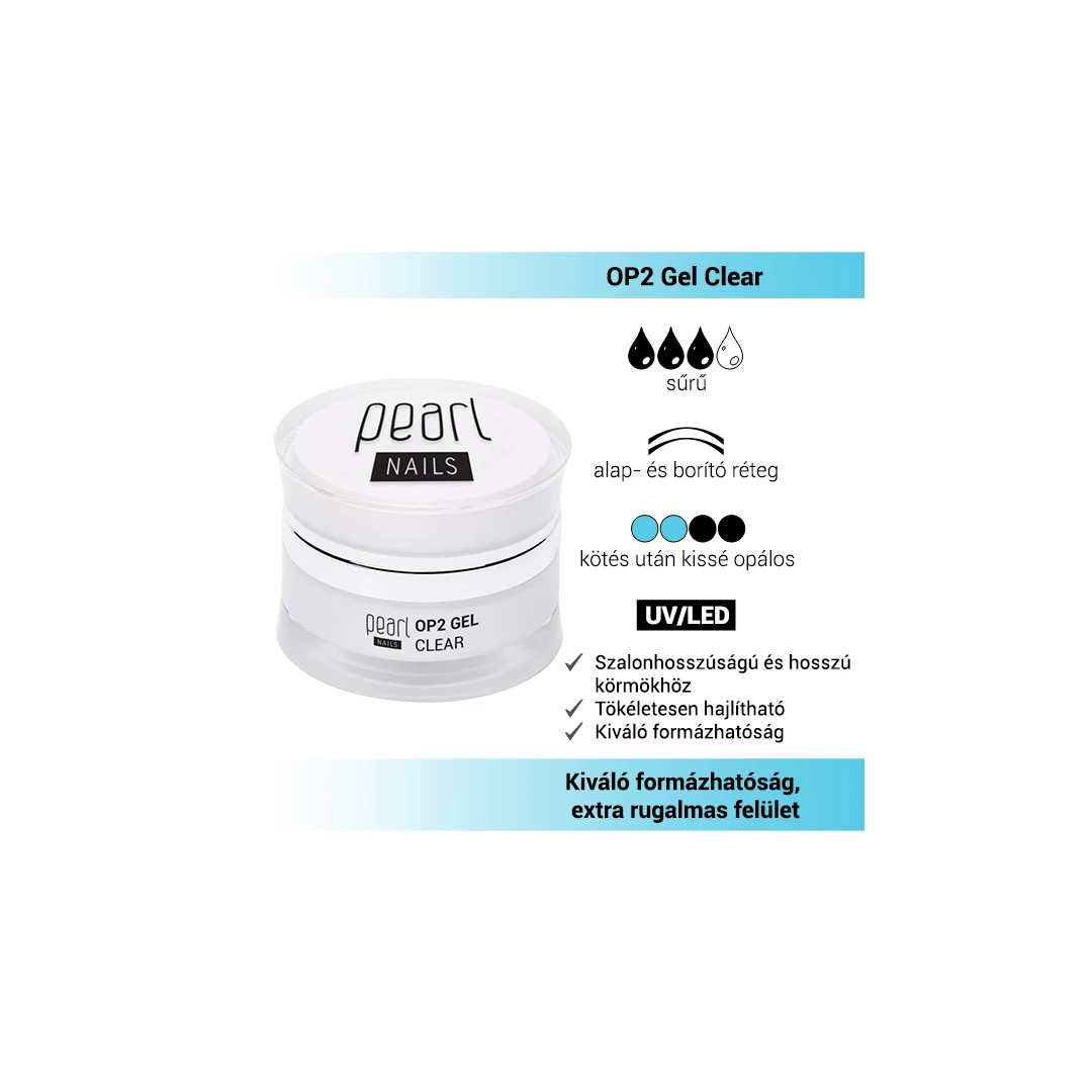 Az OP2 az egyik legerősebb csúcsminőségű építő zselénk. Kötés után kissé opálos, fényes műköröm zselé, lilás árnyalatának köszönhetően élénkíti a színeket. Kiválóan formázható, könnyen és lágyan reszelhető. Sűrű állagának köszönhetően remekül eldolgozható, nem levegősödik, tökéletes tapadást biztosít. Alap-és borítóréteg elkészítéséhez is ajánljuk. Az OP2 zselé használatával a reszelési idő minimálisra csökken, tökéletesen fényes felületűre köt és csak minimális fixálást igényel.