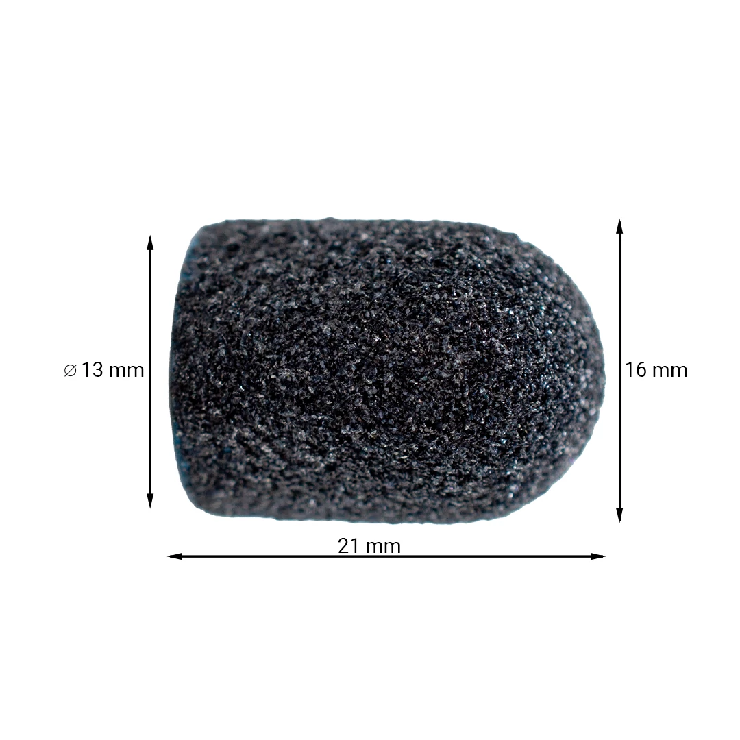 Pedikűr kezelések során használt, durva erősségű egyszerhasználatos csiszolósapka bőrkeményedés eltávolítására. A csiszolókupak karborundum (SiC) bevonattal készült, mely a piacon elérhető egyik legtartósabb csiszolófelület. A kupak belső felülete ABS keverék, mely biztonságos munkavégzést és csiszolókupak ellenállóságát biztosítja.