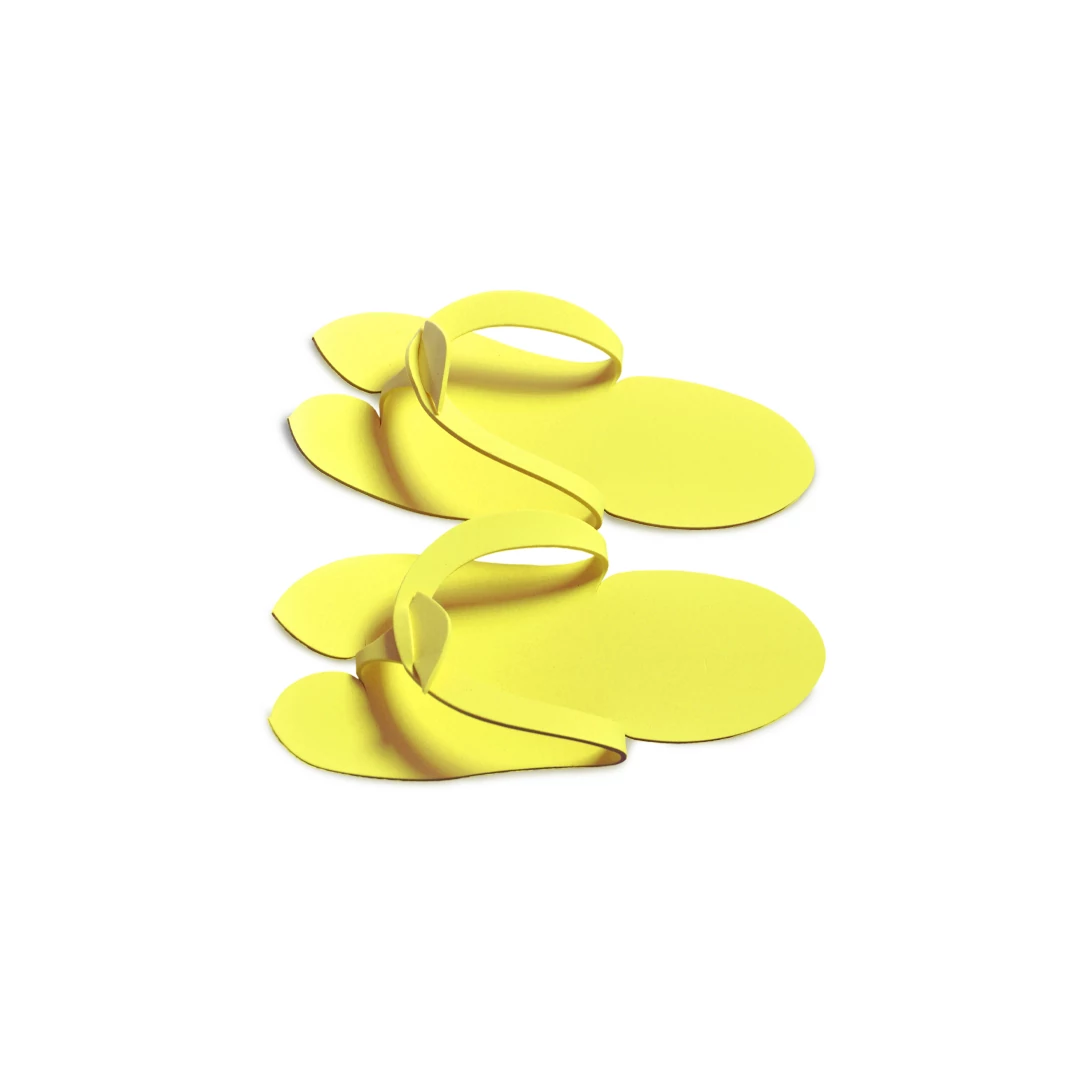 Puha, habszivacs egyszerhasználatos pedipapucs sárga színben. Pedikűrözéshez, masszázs és kozmetikai szalonokba elengedhetetlen kiegészítő.