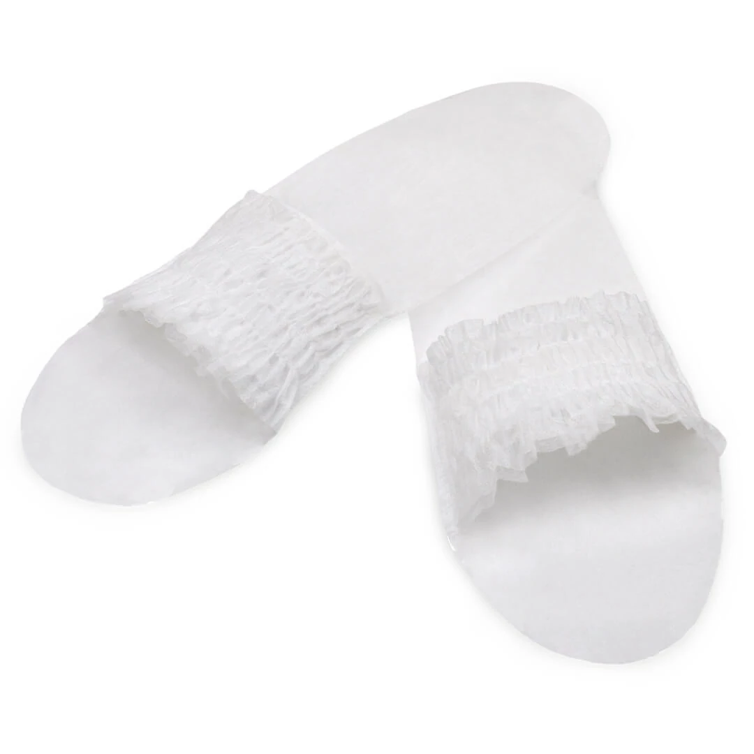 Nyitott, egyszerhasználatos, szálmentes kozmetikai papucs. Kiváló minőség, egy méretben. Kizárólag beltéri használatra.