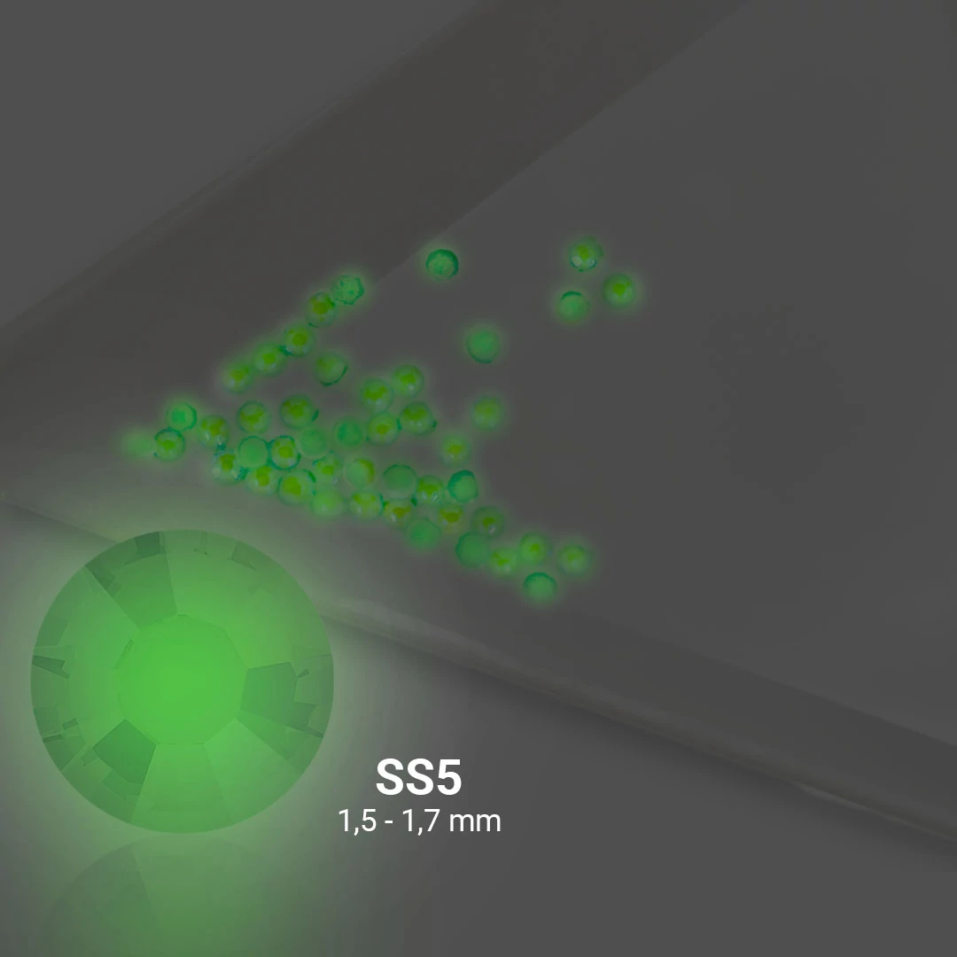 Lapos hátú (no hotfix flatback) SS5 LU04 Green sötétben világító díszítő strasszkő körömre. Sokoldalúan felhasználható körömdísz, a kreativitásodnak csupán a fantáziád szab határokat: Viaszos strasszfelszedő tollunk segítségével rakd ki strasszkövekkel a köröm teljes felületét vagy csak egy mintában, dobd fel az egyhangú körmöket!