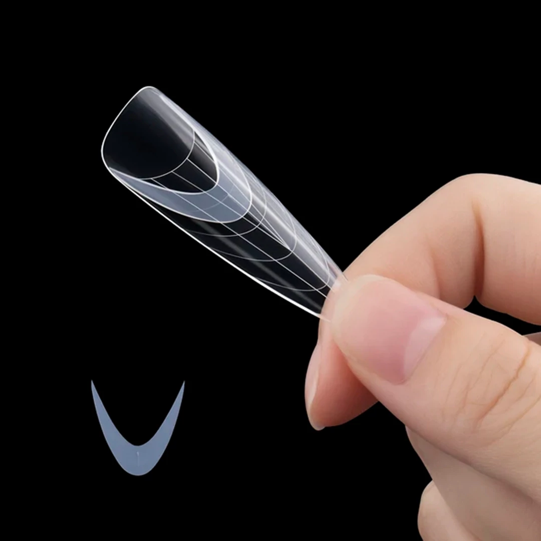 Válaszd ki és helyezd a megfelelő méretű dual tip forma belső felére a mosolyvonal sablont, és már készítheted is a francia szetteket!