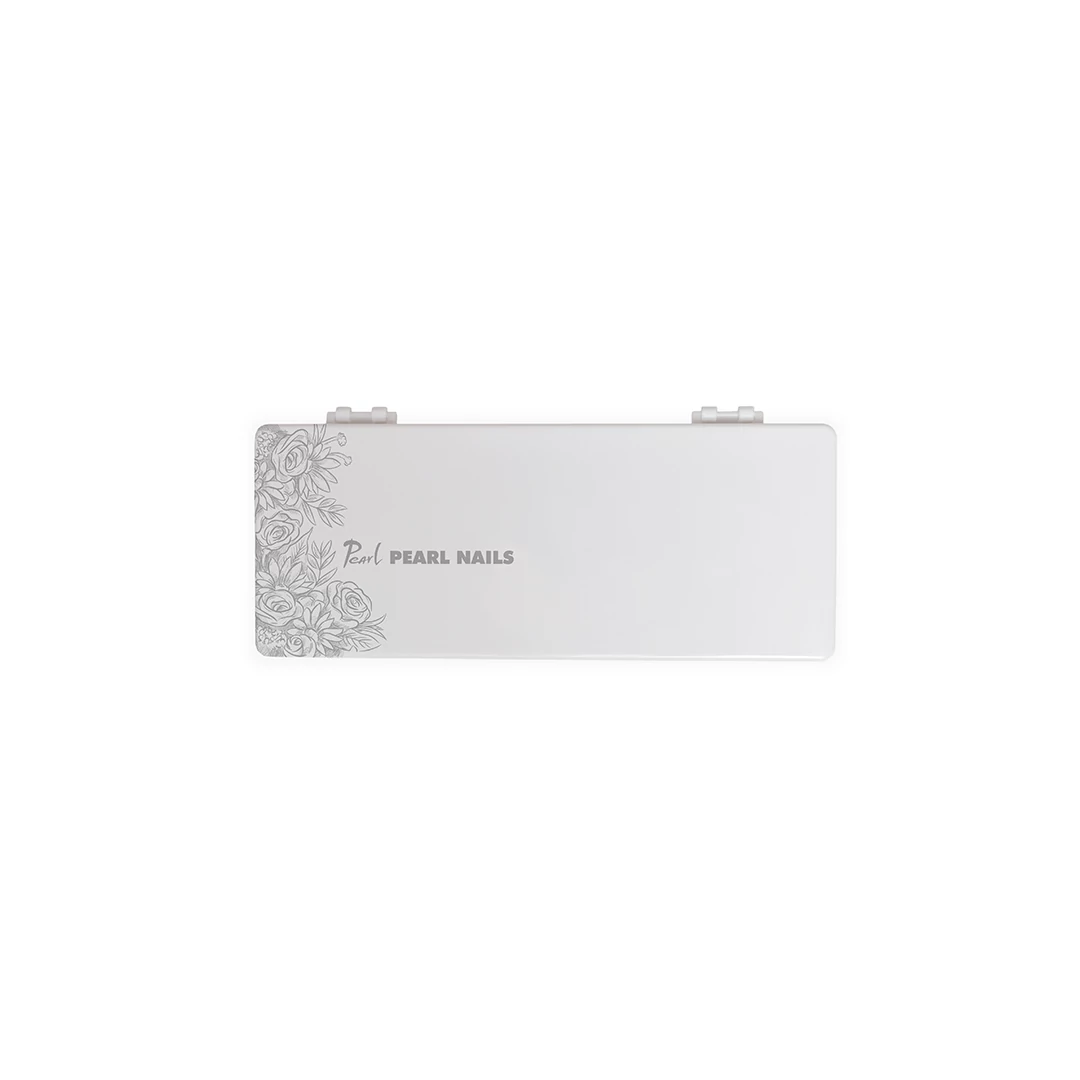Zárható, fedeles zselé paletta, festéktartó. Kivehető belső résszel, összesen 24 szín (színes zselé, festőzselé, gél lakk) tárolására és keverésére alkalmas. Fekete Pearl Nails logóval nyomva.